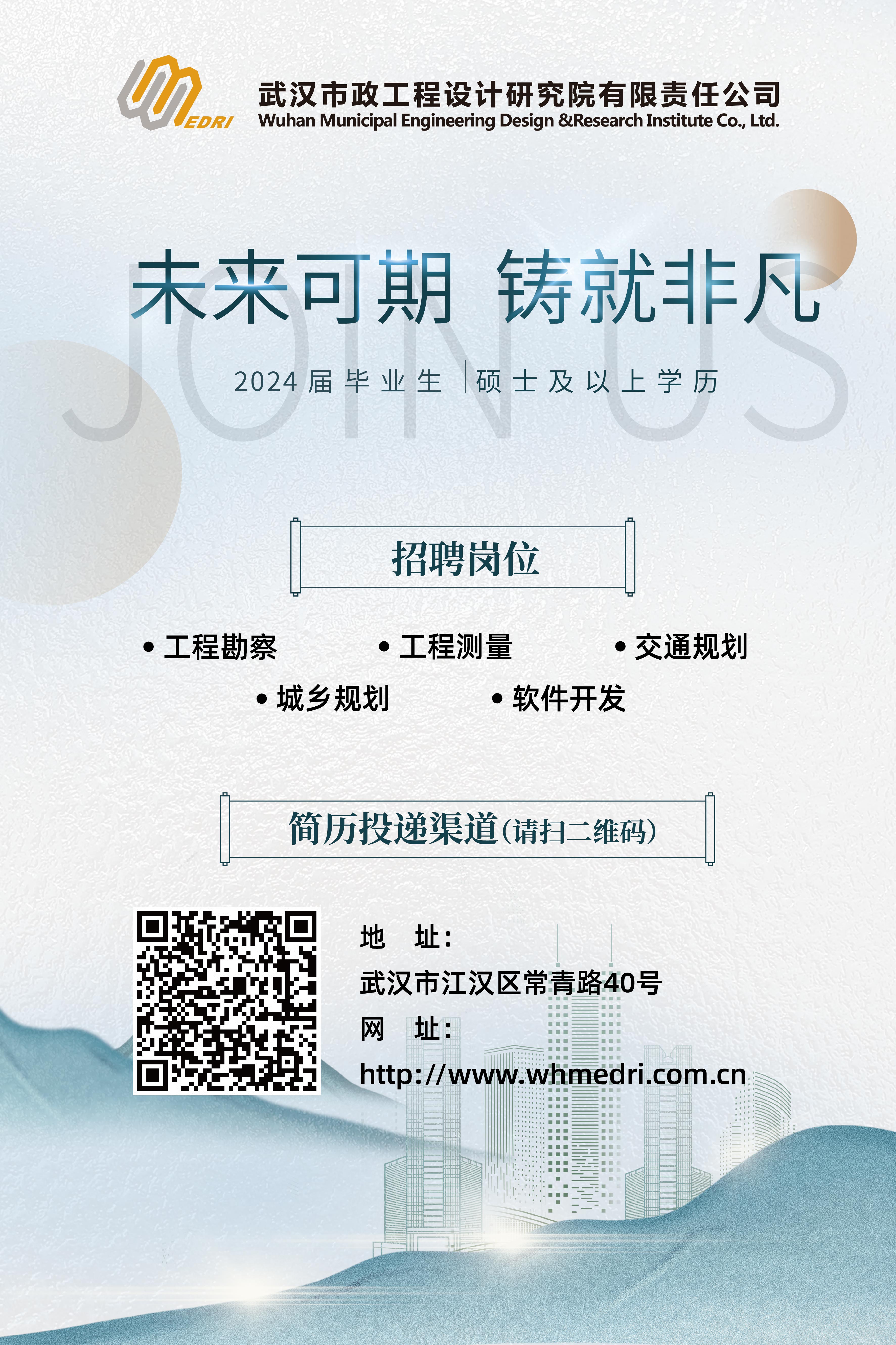 未來可期 鑄就非凡 武漢市政設(shè)計院2024屆校園招聘