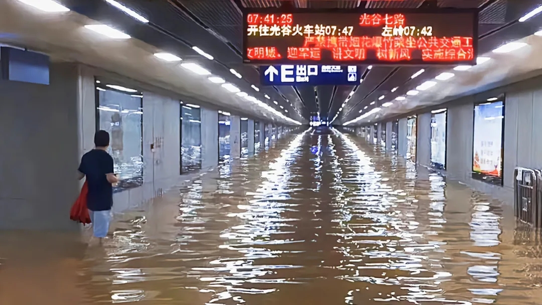 時(shí)間回到2019年6月21日,武漢經(jīng)歷了當(dāng)年24小時(shí)最大累計(jì)降雨量174.7毫米的暴雨,高新大道與光谷七路路口出現(xiàn)了嚴(yán)重漬水,路面最大漬水深度達(dá)到50cm,且有部分雨水通過有軌電車與地鐵換乘通道進(jìn)入地鐵站點(diǎn),嚴(yán)重影響周邊交通出行。