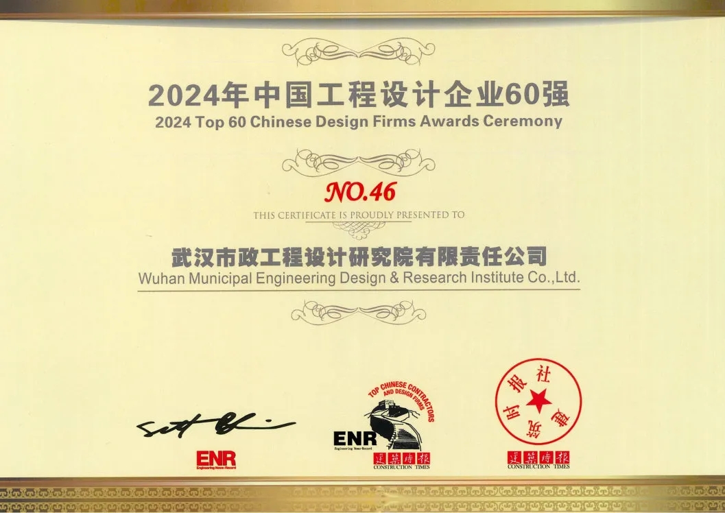 喜報(bào)|武漢市政院榮膺“中國(guó)工程設(shè)計(jì)企業(yè)60強(qiáng)”