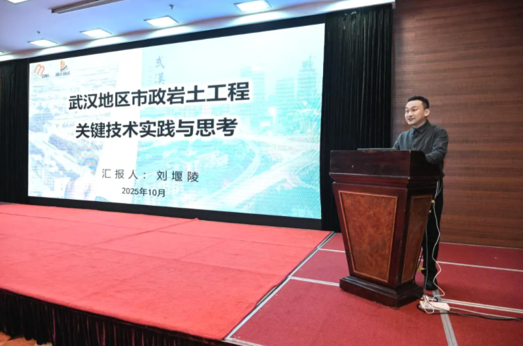 會(huì)上,武漢市政院巖土專(zhuān)業(yè)高級(jí)工程師劉堰陵作為報(bào)告嘉賓,作了題為《武漢地區(qū)市政巖土工程的實(shí)踐與思考》專(zhuān)題報(bào)告,分享了武漢市政院巖土博士創(chuàng)新工作室近一年來(lái)的三項(xiàng)核心成果。