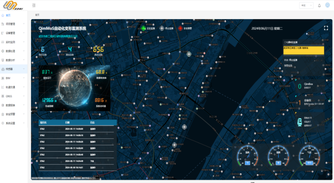 多年來,武漢市政院始終堅守 “創(chuàng)新驅(qū)動、技術(shù)為本” 的發(fā)展理念,積極構(gòu)建 “產(chǎn)學研用” 協(xié)同創(chuàng)新體系,與多家高校、行業(yè)龍頭企業(yè)聯(lián)合開展技術(shù)攻關(guān),重點深耕深基坑工程全生命周期自動化監(jiān)測技術(shù)領(lǐng)域。目前,公司自主研發(fā)的深基坑工程智能監(jiān)測系統(tǒng),已成功集成北斗GNSS定位、測量機器人、陣列位移計、AI視頻巡查等多源傳感器設(shè)備,在各類深基坑工程監(jiān)測中實現(xiàn)規(guī)?;瘧?yīng)用,技術(shù)水平處于行業(yè)領(lǐng)先地位。
