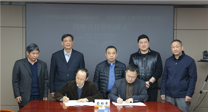 2021年3月11日上午,武漢市政設(shè)計院與上海同筑信息科技有限公司在漢簽署戰(zhàn)略合作協(xié)議,將雙方數(shù)字化合作進一步推向深入。武漢市政設(shè)計院總經(jīng)理姚華、副總經(jīng)理陳建斌,上海同筑信息科技有限公司董事長尹仕友、副總經(jīng)理劉建成及雙方相關(guān)人員出席簽約儀式。