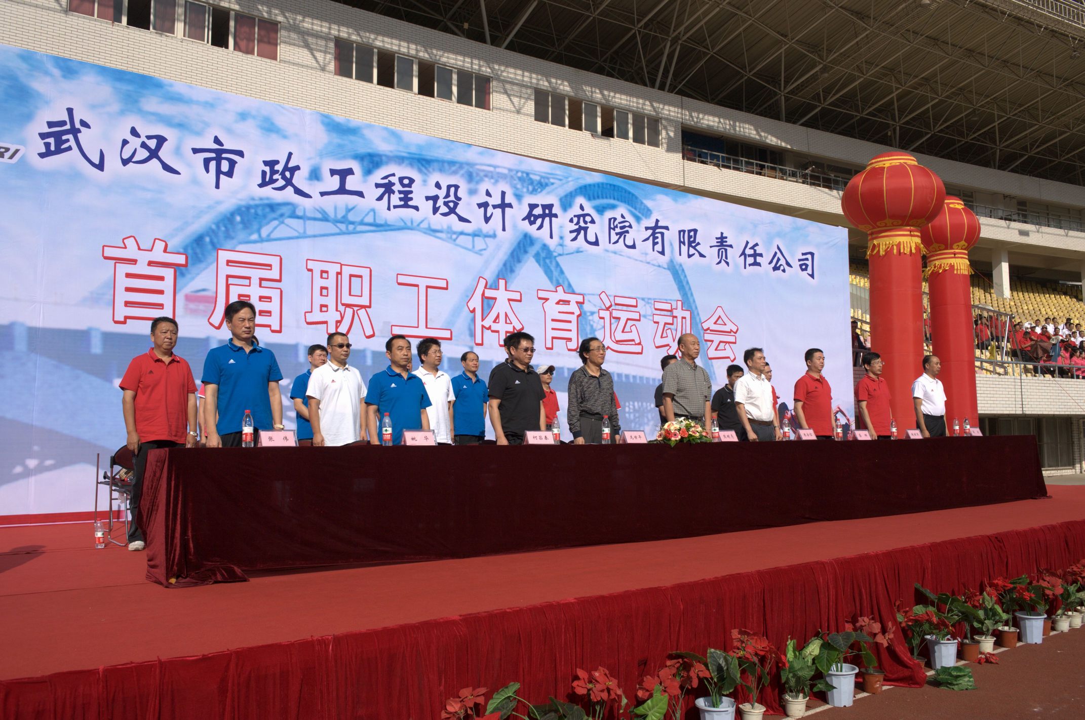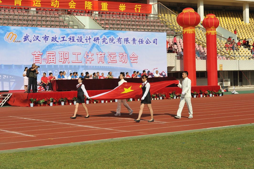 ??? 9月28日的漢口體育中心,彩旗飄揚(yáng),樂聲陣陣,在“我運(yùn)動(dòng),我健康,我快樂”的巨幅背景前,紅色的主席臺(tái)被妝點(diǎn)得分外喜慶,十只巨大的彩色氣球懸掛著運(yùn)動(dòng)會(huì)的宣傳標(biāo)語,烘托出熱烈的比賽氣氛。武漢市城建委黨組副書記、副主任熊明亮,武漢市城建委總工程師、首席市政工程專家龍世平,武漢市城建委工會(huì)主任朱宗信應(yīng)邀出席了開幕式,公司領(lǐng)導(dǎo)和各部門負(fù)責(zé)人在主席臺(tái)就坐。
