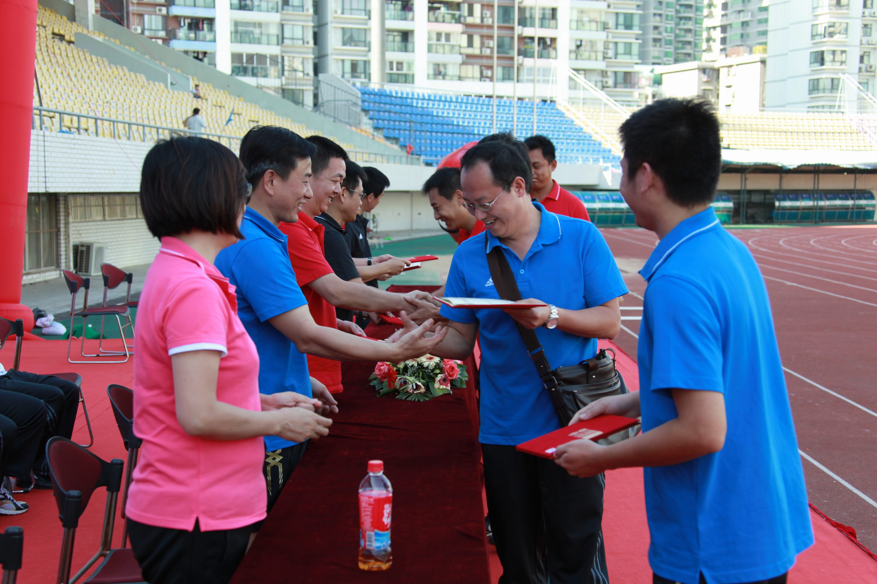 ??? 在閉幕式上舉行了隆重的頒獎(jiǎng)儀式,三十六名在比賽中發(fā)揮出色的運(yùn)動(dòng)員走到臺(tái)上,從公司領(lǐng)導(dǎo)手中接過榮譽(yù)證書,并接受了全場(chǎng)觀眾送出的熱烈的掌聲與歡呼聲。