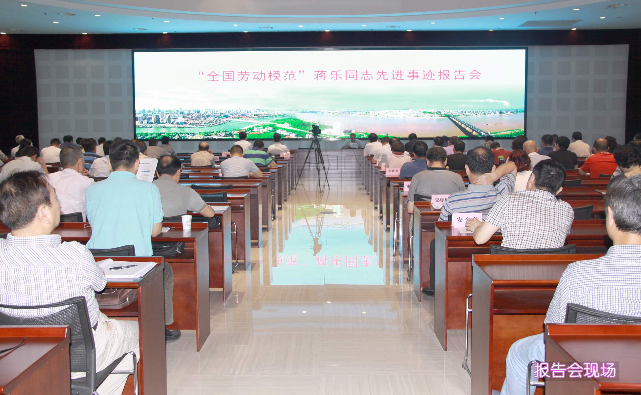 ??? 6月26日上午,市城建委一樓報(bào)告廳氣氛莊嚴(yán),座無虛席,“全國勞動(dòng)模范”蔣樂同志先進(jìn)事跡報(bào)告會(huì)在這里舉行,來自全市城建系統(tǒng)的近兩百名工作者參加了大會(huì),市城建委彭浩主任等領(lǐng)導(dǎo)出席大會(huì),公司領(lǐng)導(dǎo)、黨支部書記參加了會(huì)議。