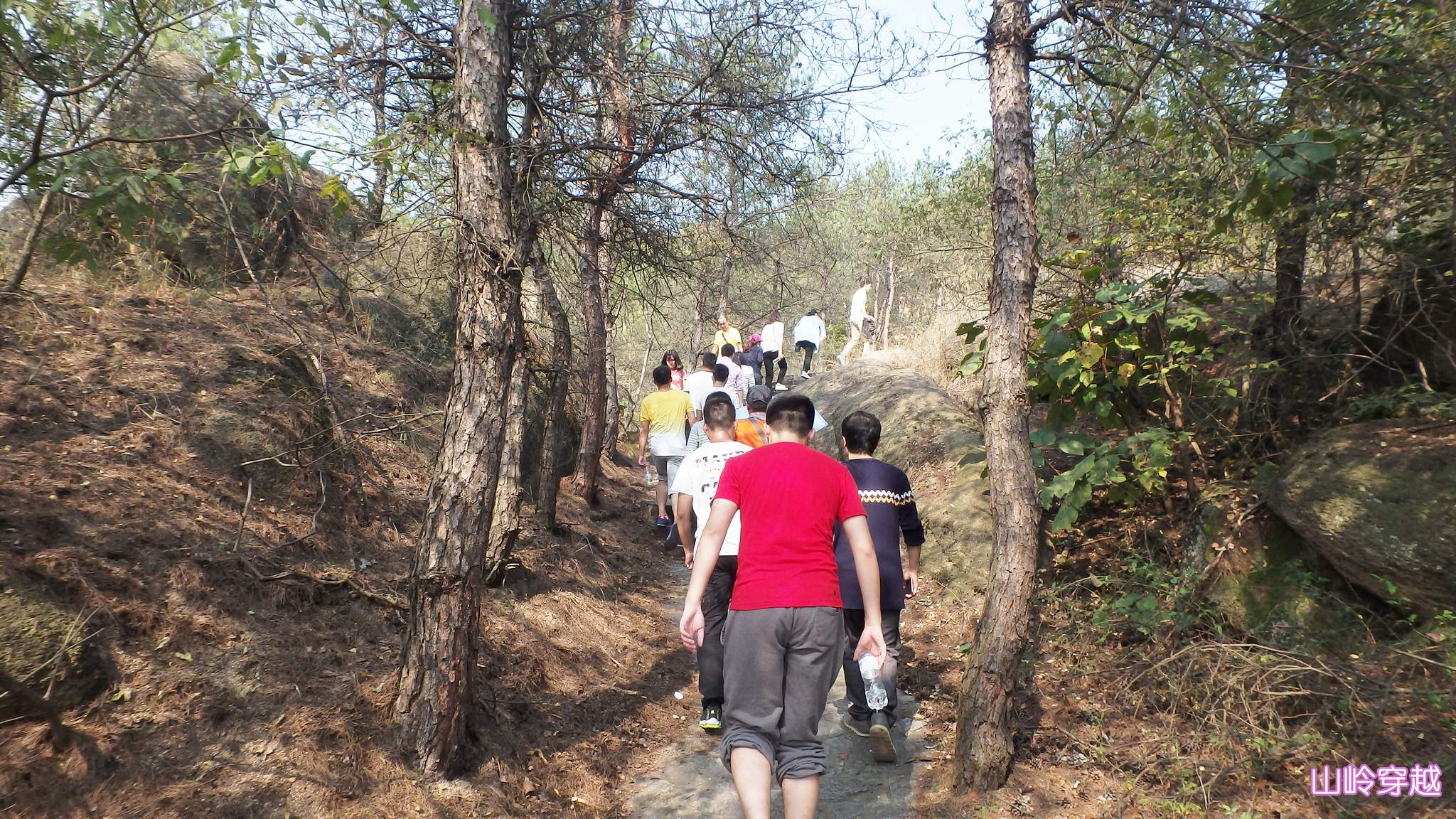 ??? 經(jīng)過了短暫的休整,隊員們開始了山嶺徒步,自山腳出發(fā),用了兩個小時徒步穿越了古門景區(qū)。一路上,隊員們有說有笑,相互扶持,互相鼓勵,保證了全部隊員安全完成徒步穿越。