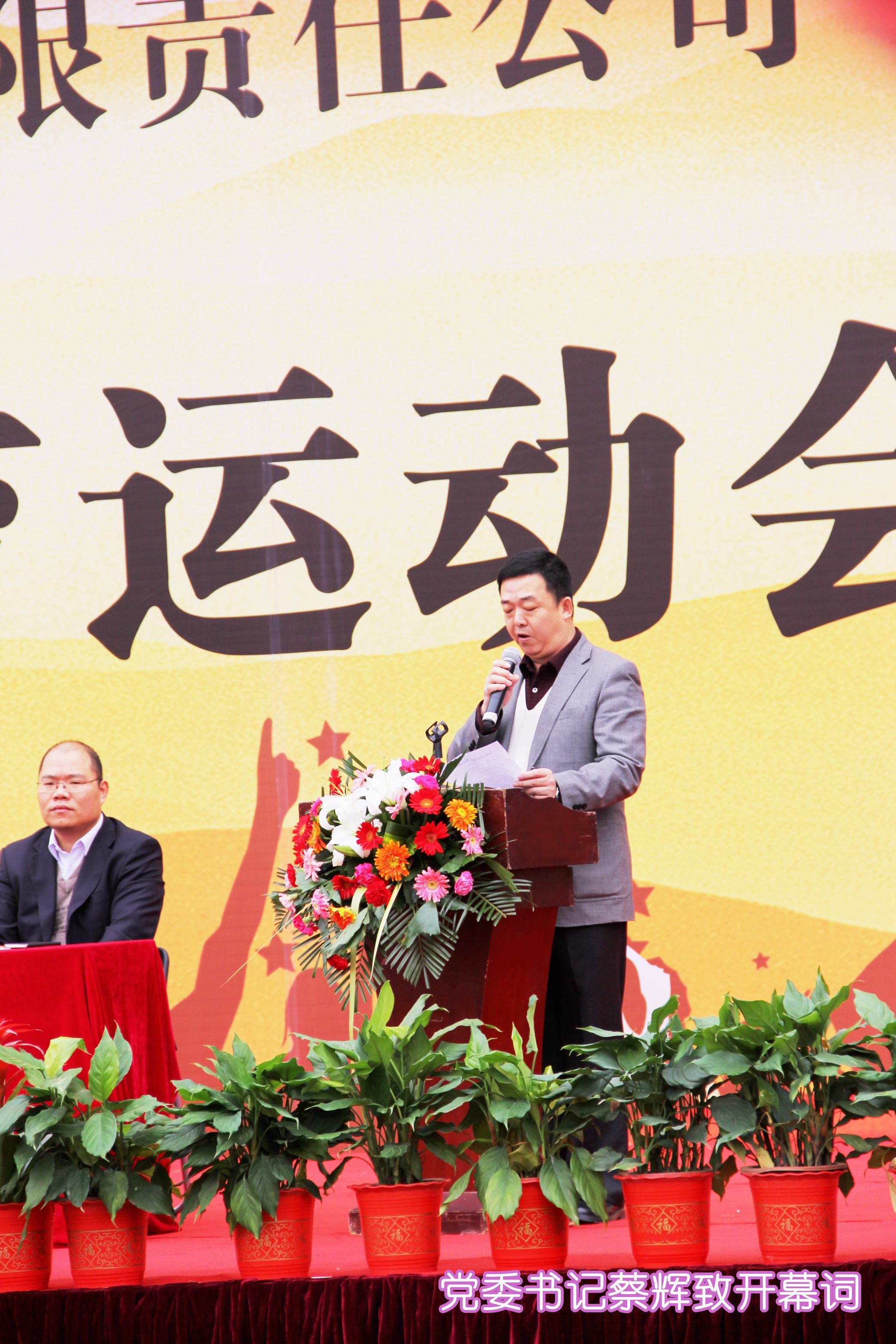 ??? 黨委書記蔡輝同志致開幕詞,他充分肯定了體育文化建設(shè)對(duì)公司各項(xiàng)工作的積極促進(jìn)作用,并希望廣大運(yùn)動(dòng)員發(fā)揚(yáng)“頑強(qiáng)拼搏,勇爭(zhēng)第一”的精神,以飽滿的情緒、激昂的斗志、團(tuán)結(jié)向上的精神投入到比賽中,超越自我,勇創(chuàng)佳績(jī)。