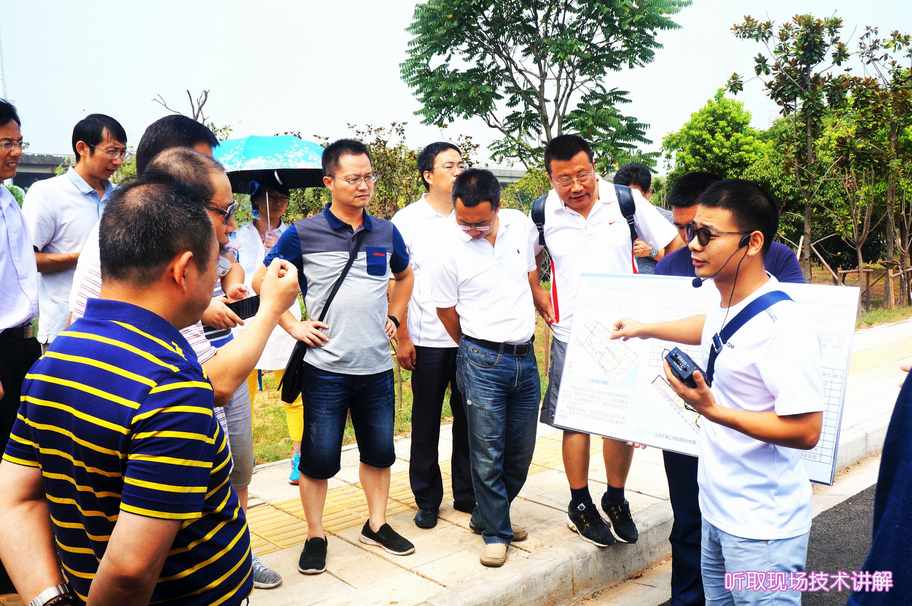 ??? 早上7點(diǎn)30分,參觀人員集中乘車,先后前往青山海綿城市建設(shè)示范區(qū)和四新海綿城市建設(shè)示范區(qū)進(jìn)行實(shí)地參觀考察,聽取了公司主要設(shè)計(jì)人員關(guān)于海綿城市設(shè)計(jì)理念的介紹和取得的實(shí)際效果,并邀請(qǐng)施工單位負(fù)責(zé)人講解了海綿城市項(xiàng)目在施工中運(yùn)用的技術(shù)和材料。參觀人員邊看邊聽邊記,詳細(xì)了解了海綿城市項(xiàng)目在設(shè)計(jì)、施工中的特點(diǎn)和需要注意的問題。