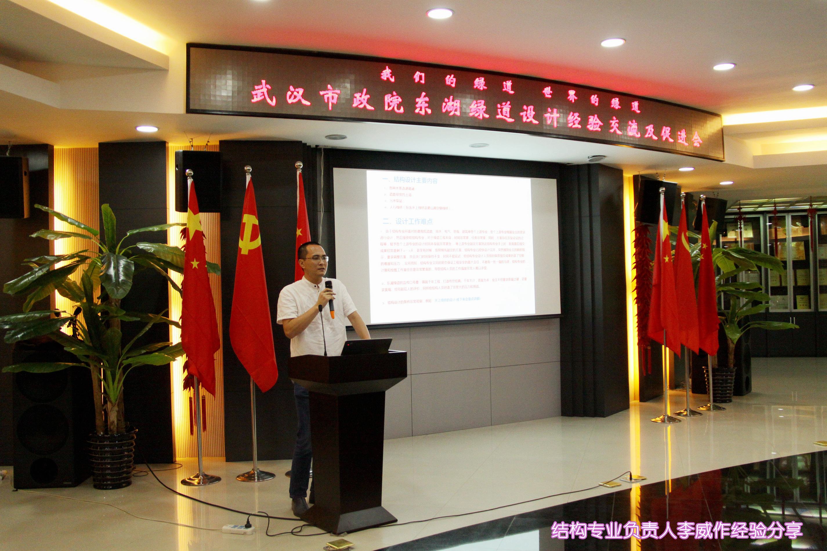 ??? 會(huì)議由總經(jīng)理助理、東湖綠道項(xiàng)目經(jīng)理呂錦剛同志首先發(fā)言,他因在東湖綠道一期工程中的突出表現(xiàn),被市總工會(huì)授予“五一勞動(dòng)獎(jiǎng)?wù)隆睒s譽(yù)稱號(hào)。他以《如何在重大項(xiàng)目中擔(dān)任合格的項(xiàng)目經(jīng)理》為題,結(jié)合自己在東湖綠道中的親身體會(huì),向在座的青年員工闡釋了如何在項(xiàng)目中學(xué)習(xí)、成長(zhǎng)和成才。隨后,東湖綠道設(shè)計(jì)團(tuán)隊(duì)的核心成員們順次登場(chǎng),項(xiàng)目負(fù)責(zé)人周紅霞、景觀專業(yè)負(fù)責(zé)人彭鐘、結(jié)構(gòu)專業(yè)負(fù)責(zé)人李威、給排水專業(yè)負(fù)責(zé)人李昂澤等,他們以生動(dòng)的PPT為載體,為大家展示設(shè)計(jì)亮點(diǎn)、總結(jié)工作經(jīng)驗(yàn)、暢談個(gè)人感悟,會(huì)議現(xiàn)場(chǎng)不時(shí)響起熱烈的掌聲