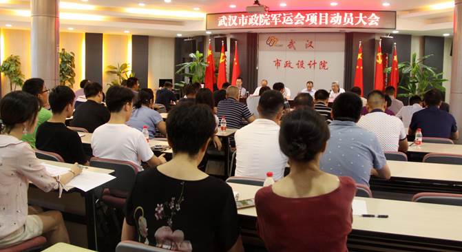 ??? 8月11日上午,武漢市政院在西二樓會議室召開軍運會項目動員推進大會,會議由副總經(jīng)理周俊主持,公司主要領(lǐng)導(dǎo)、總經(jīng)理助理、相關(guān)部門負責(zé)人、技術(shù)管理人員和軍運會項目負責(zé)人、專業(yè)負責(zé)人共60余人參加了會議。