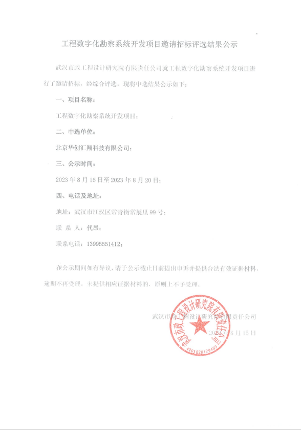 工程數(shù)字化勘察系統(tǒng)開發(fā)項目邀請招標評選結(jié)果公示